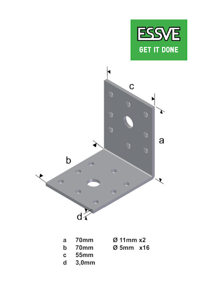 VINKEL V9, VARMFÖRZINKAD Tillverkad av varmförzinkad stålplåt och försedd med 5,0 mm hål och bulthål.