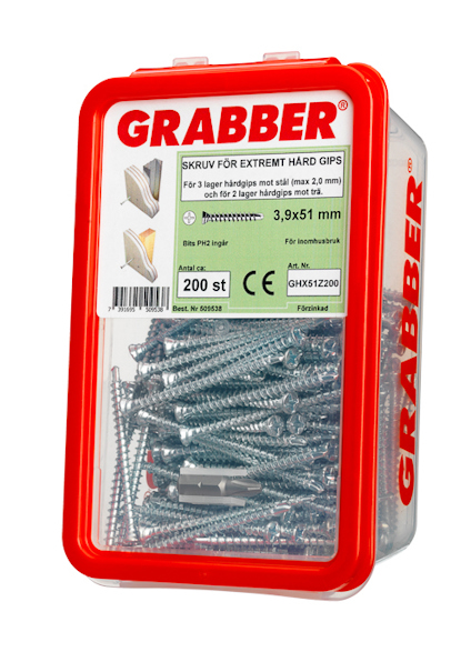 Gipsskruv 3,9x51 med borrspets för extremt hård gips. För invändigt bruk. Läs mer