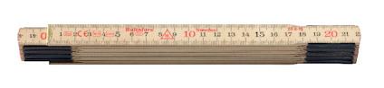 Tillverkade av björkträ. Nollpunkt i båda ändar. Metrisk gradering på båda sidor. Röda decimalsiffror. Läs mer