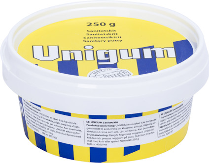 Unigum är ett icke-härdande, syntetiskt gummikitt helt fritt från organiska lösningsmedel. Det används i första hand för tätning vid anslutning av toalettstolar, köksavlopp och vid installation av stålvaskar. Det kan dessutom användas för många andra ändamål där ett smidigt, vidhäftande och icke-härdande kitt är önskvärt. Unigum kan även användas utomhus för tätning av takrännor, stuprör, takbeläggningar av eternit, plåt m m. Unigums goda vidhäftningsförmåga gör det möjligt att använda det på så olika material som metall, trä, glas, betong, plast o s v. Eftersom avloppskittet aldrig härdar förblir det smidigt och påverkas ej av materialrörelser. Det är lätt att forma även när det är kallt. Kittet är väderbeständigt, det klibbar inte fast på fingrarna och det kan målas över.